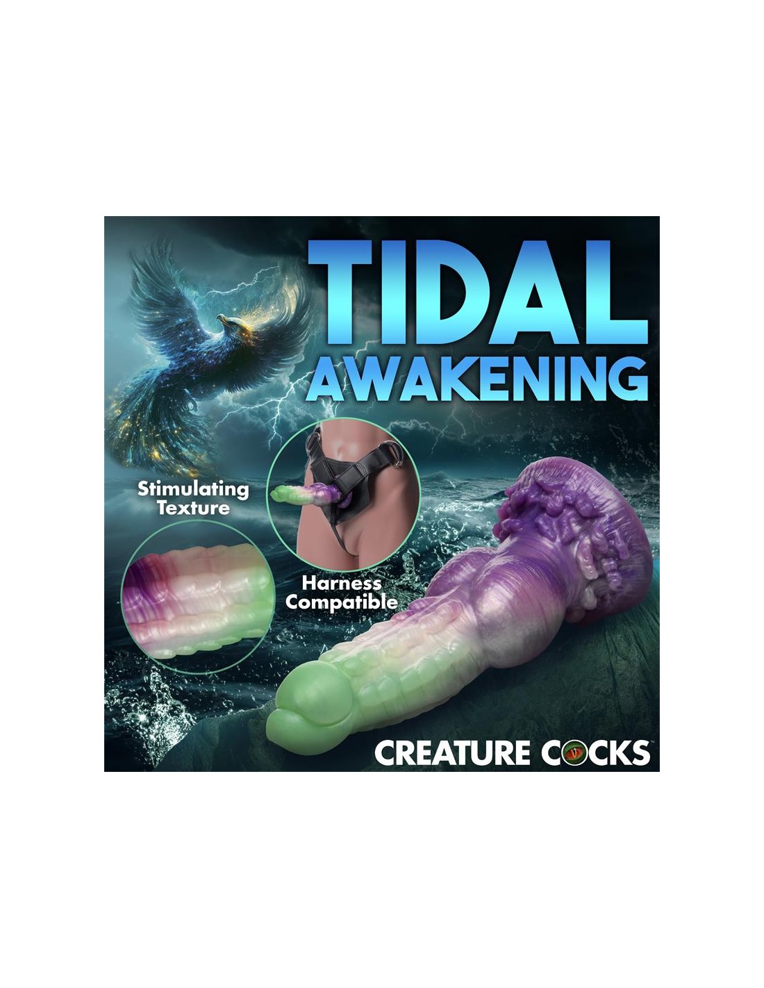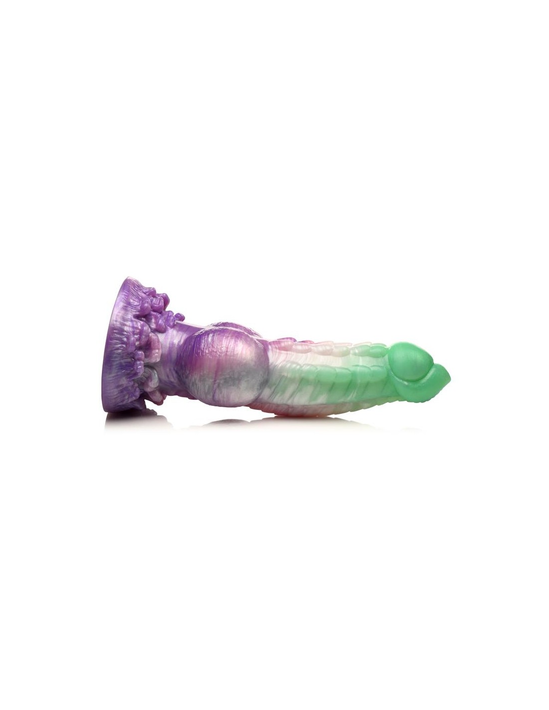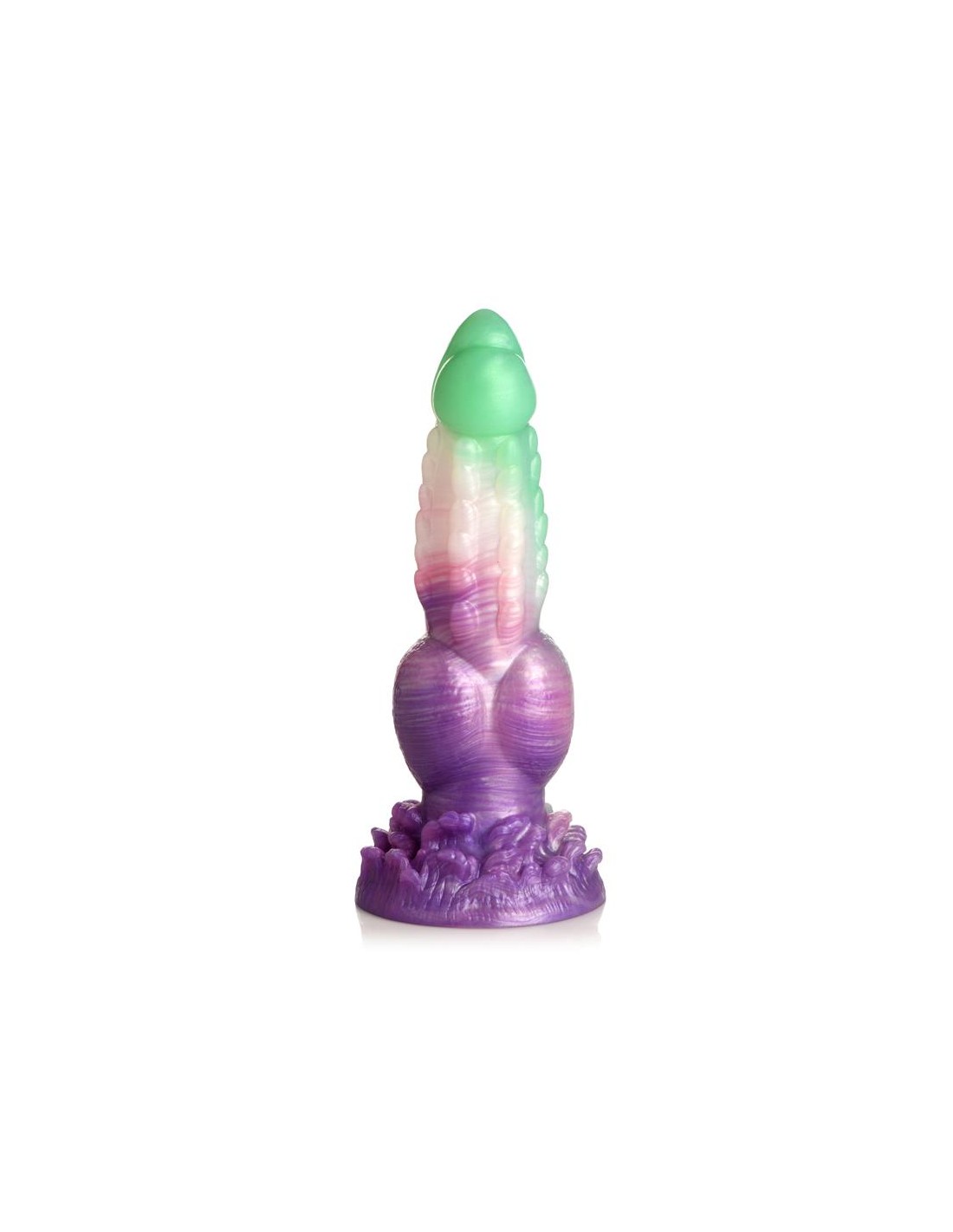 ¡Deja volar tus fantasías míticas! Este singular Aqua Phoenix muere y renace no por fuego, sino con el poder de los mares agitados. El dildo verde jade y morado presenta hileras de firmes crestas a lo largo del eje, una punta lisa, nudos redondos cerca de la base y un plumaje de olas rompientes en la base. Este dildo carnoso tiene una cabeza cónica para facilitar la inserción, pero un cuerpo grueso y grueso que te llevará al límite. Hecho de silicona premium, flexible y libre de ftalatos, este dildo es seguro para el cuerpo y se recomienda usarlo solo con lubricantes a base de agua. ¡Disfruta de experiencias con manos libres gracias a su potente base de ventosa! ¡Invita a tu pareja a disfrutar de un cosplay erótico o un juego de rol de fantasía y usa su arnés favorito para transformar este dildo en un strap-on! Después, asegúrate de lavarlo con agua tibia y jabón suave, rociarlo con un limpiador de juguetes y dejarlo secar al aire. Mantener alejado de la luz solar directa y del calor.