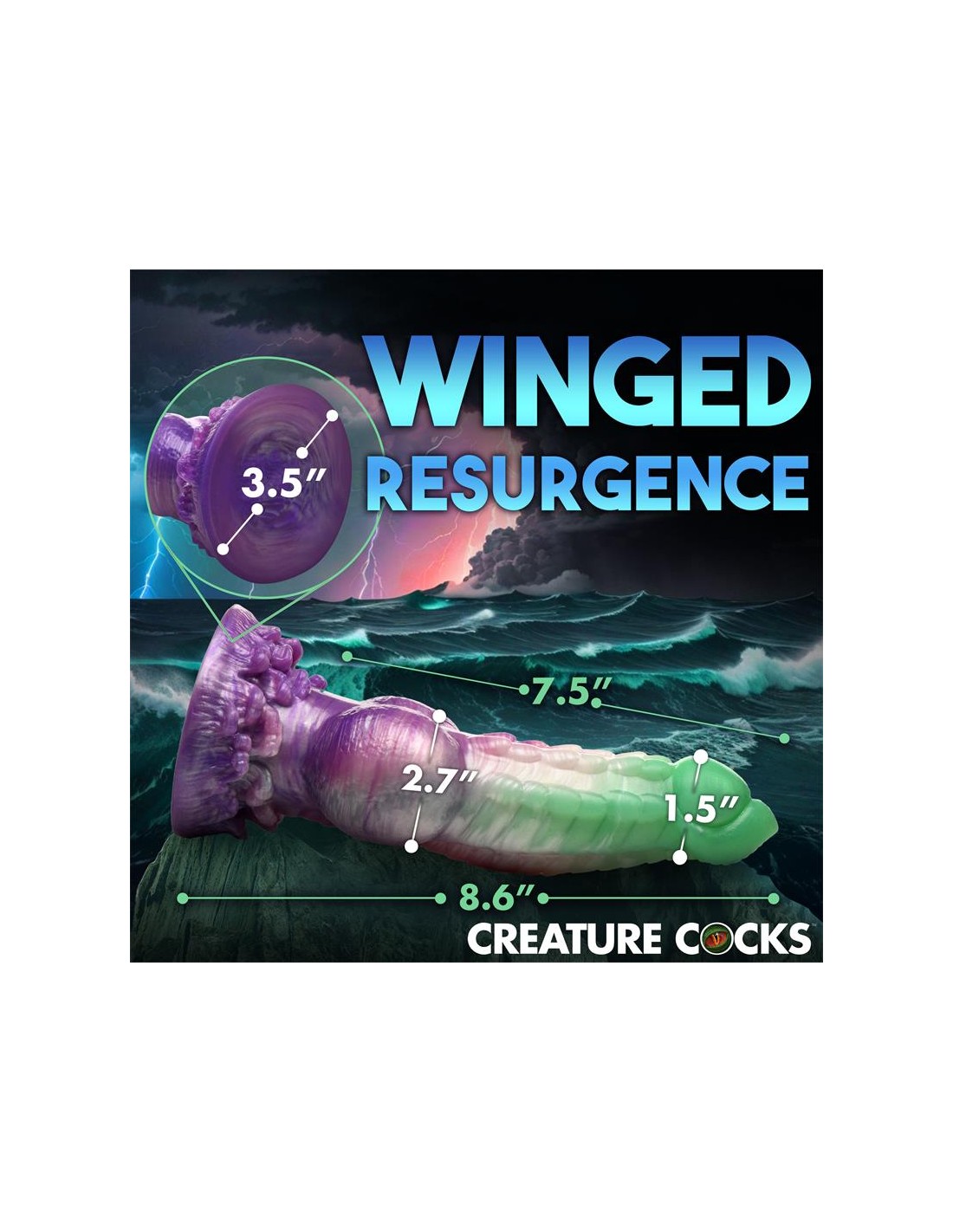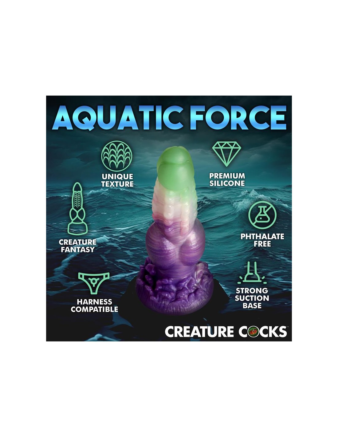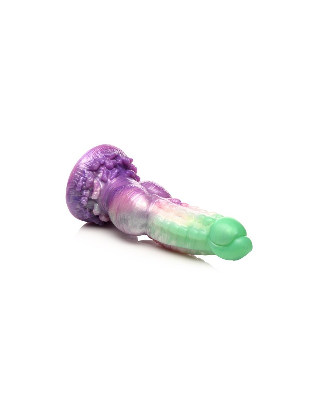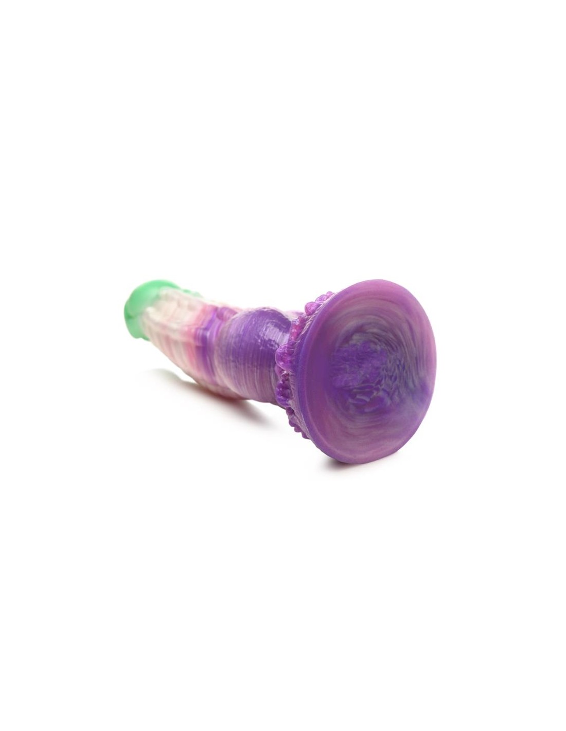 ¡Deja volar tus fantasías míticas! Este singular Aqua Phoenix muere y renace no por fuego, sino con el poder de los mares agitados. El dildo verde jade y morado presenta hileras de firmes crestas a lo largo del eje, una punta lisa, nudos redondos cerca de la base y un plumaje de olas rompientes en la base. Este dildo carnoso tiene una cabeza cónica para facilitar la inserción, pero un cuerpo grueso y grueso que te llevará al límite. Hecho de silicona premium, flexible y libre de ftalatos, este dildo es seguro para el cuerpo y se recomienda usarlo solo con lubricantes a base de agua. ¡Disfruta de experiencias con manos libres gracias a su potente base de ventosa! ¡Invita a tu pareja a disfrutar de un cosplay erótico o un juego de rol de fantasía y usa su arnés favorito para transformar este dildo en un strap-on! Después, asegúrate de lavarlo con agua tibia y jabón suave, rociarlo con un limpiador de juguetes y dejarlo secar al aire. Mantener alejado de la luz solar directa y del calor.