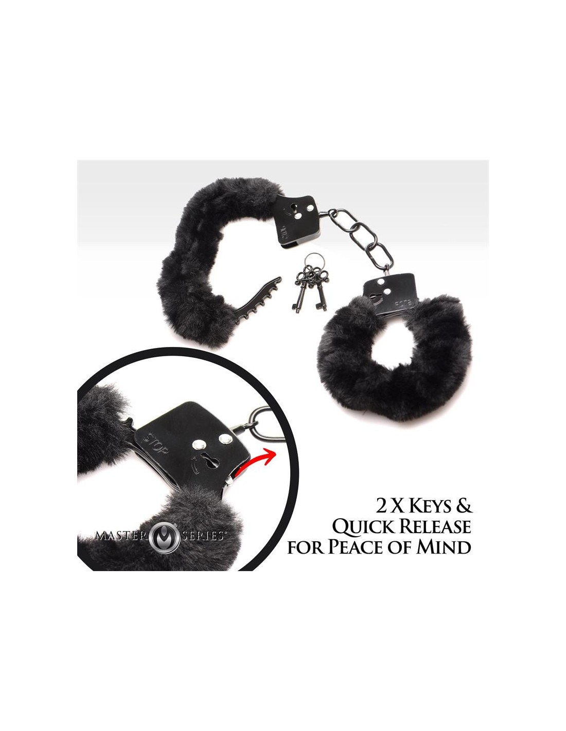 Estas esposas de pelo de negro rosa son suaves y sensuales. Estas esposas son metálicas, pero no te molestarán, ya que son acolchadas con lana artificial de piel sintética. Son totalmente ajustables y se cierran hasta 11,4 cm y se abren hasta 18 cm de circunferencia. Incluyen dos llaves para que siempre tengas una de repuesto. Para limpiarlas, simplemente utiliza agua tibia, jabón y una toallita, y deja secar.