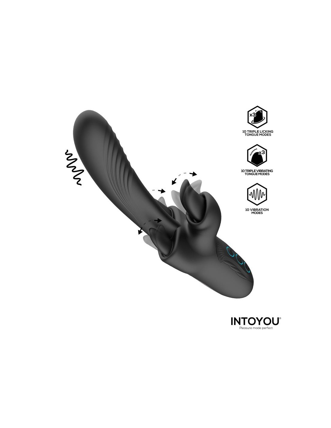 - Licking: Con 10 modos de movimiento triple, Triton cuenta con 3 lenguas, situadas estratégicamente, para multiplicar el placer exponencialmente.