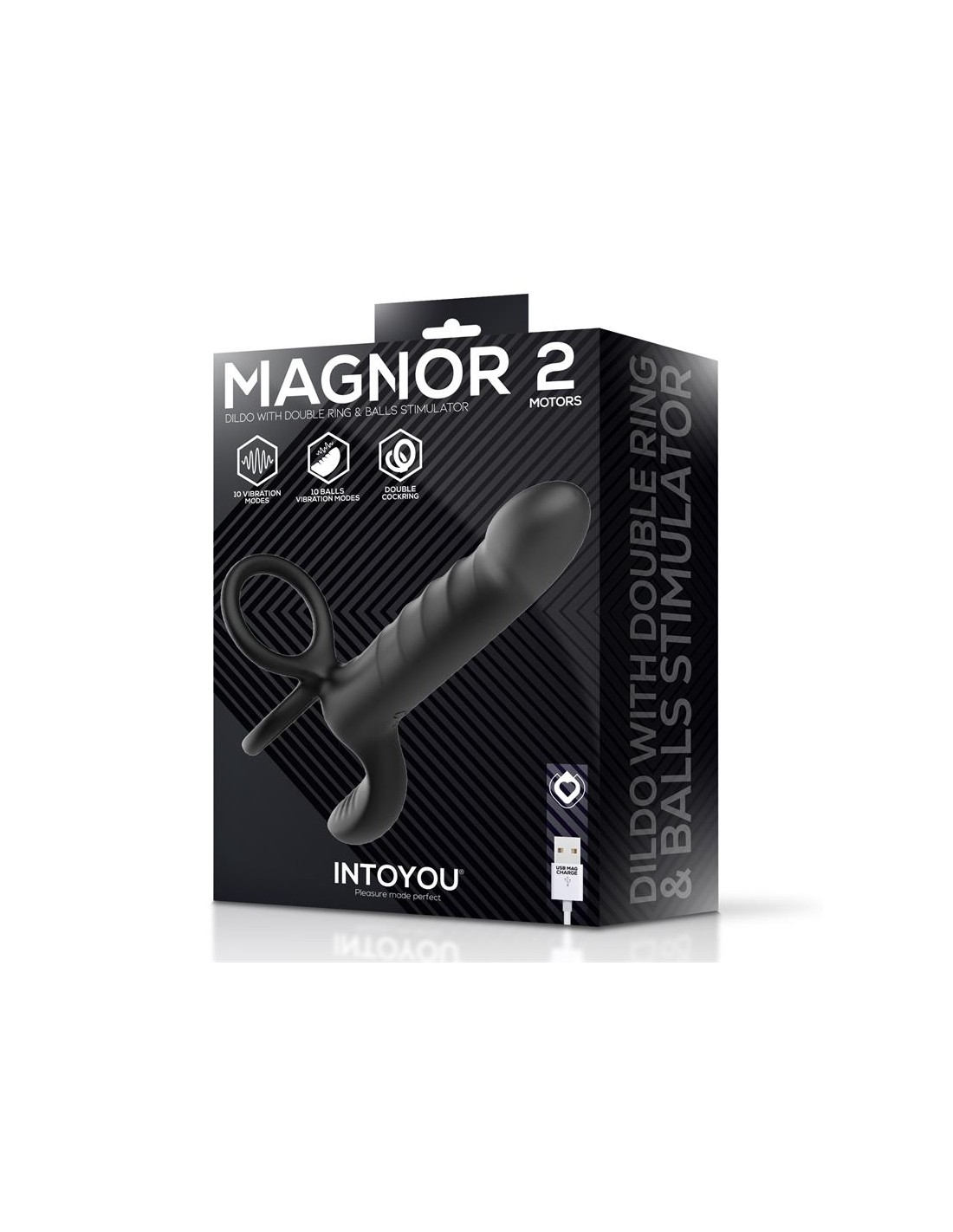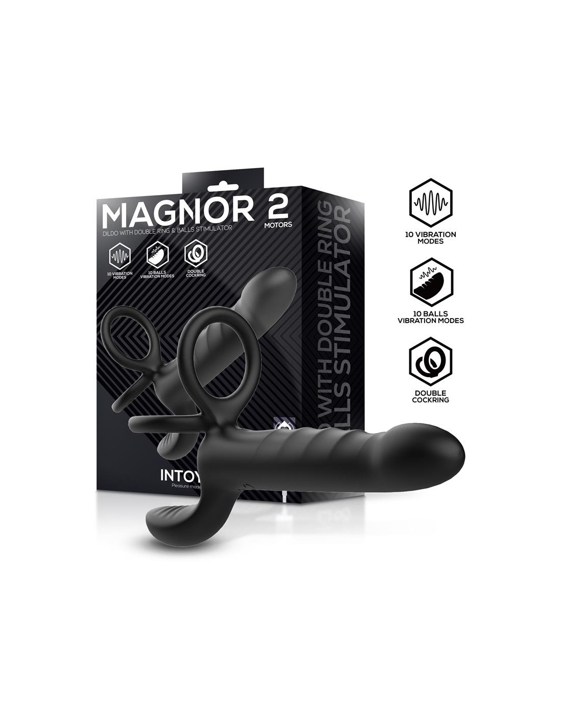 Descubre una experiencia más completa con Magnor, un juguete diseñado para ofrecer estimulación total gracias a su innovador sistema de doble anillo, estimulación para los testículos y 10 funciones de vibración.