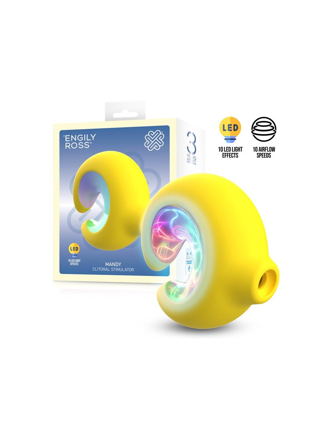Mandy no es solo un succionador de clítoris, es una experiencia sensorial completa. Su innovador sistema de 10 efectos de luces LED, creando una atmósfera visual que se adapta a tu estado de ánimo.