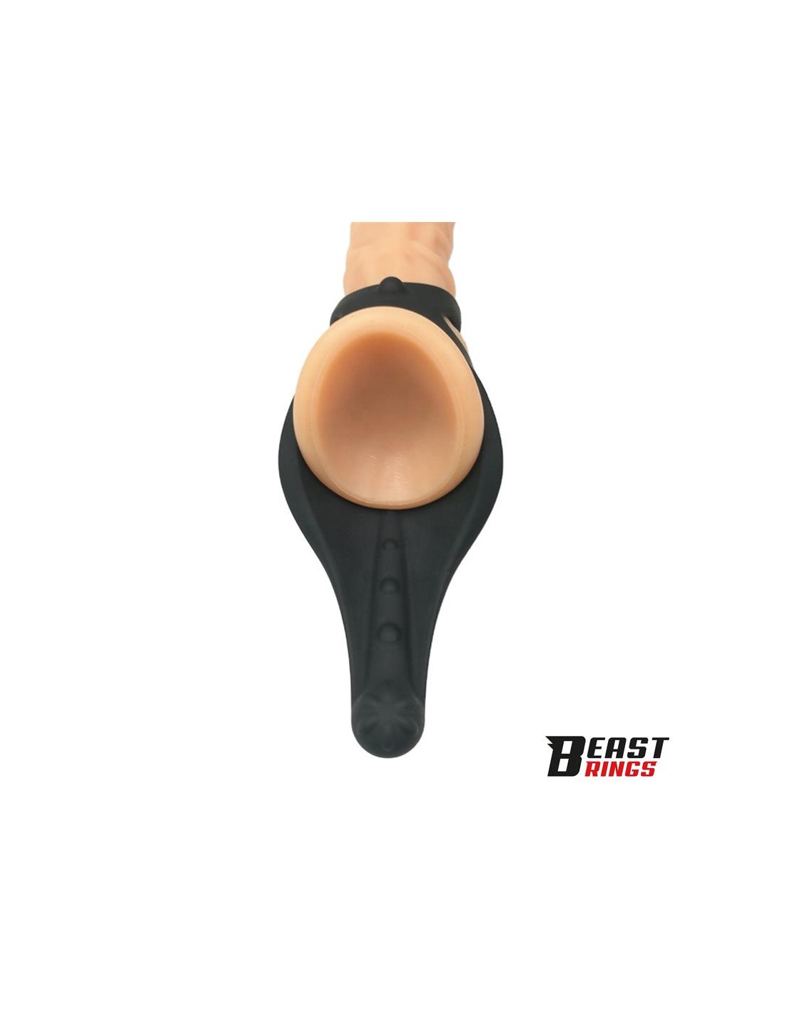 Este anillo es muy especial, ya que cuenta con una forma alargada para una estimulación extra. como te hemos dicho, cuenta, junto con los orificios para el pene, con una parte alargada y texturizada para estimular el cuerpo del pene.