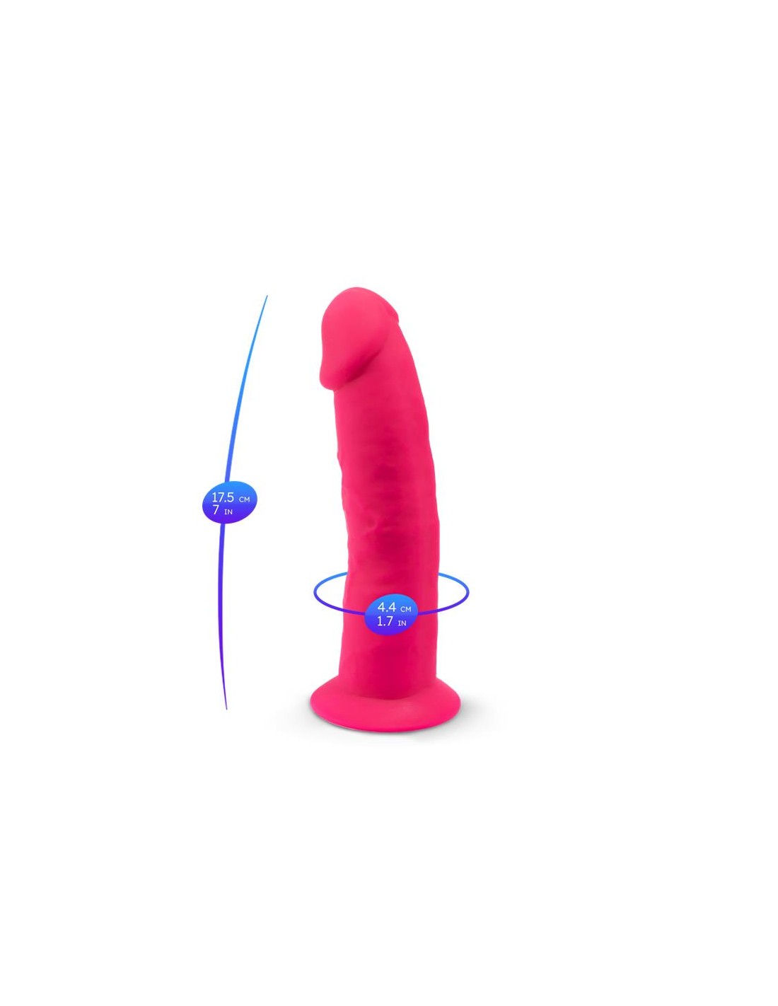 Cuenta con una punta redondeada en forma de glande y un cuerpo lleno de venas para añadir más sensaciones. Cuenta con una novedosa textura Memory Silicone suave, flexible y sobre todo, realista. Para que la puedas usar donde quieras cuenta con una fuerte ventosa en la base para que no te pongan límites. Es compatible con arneses para que lo puedas disfrutar con tu pareja.