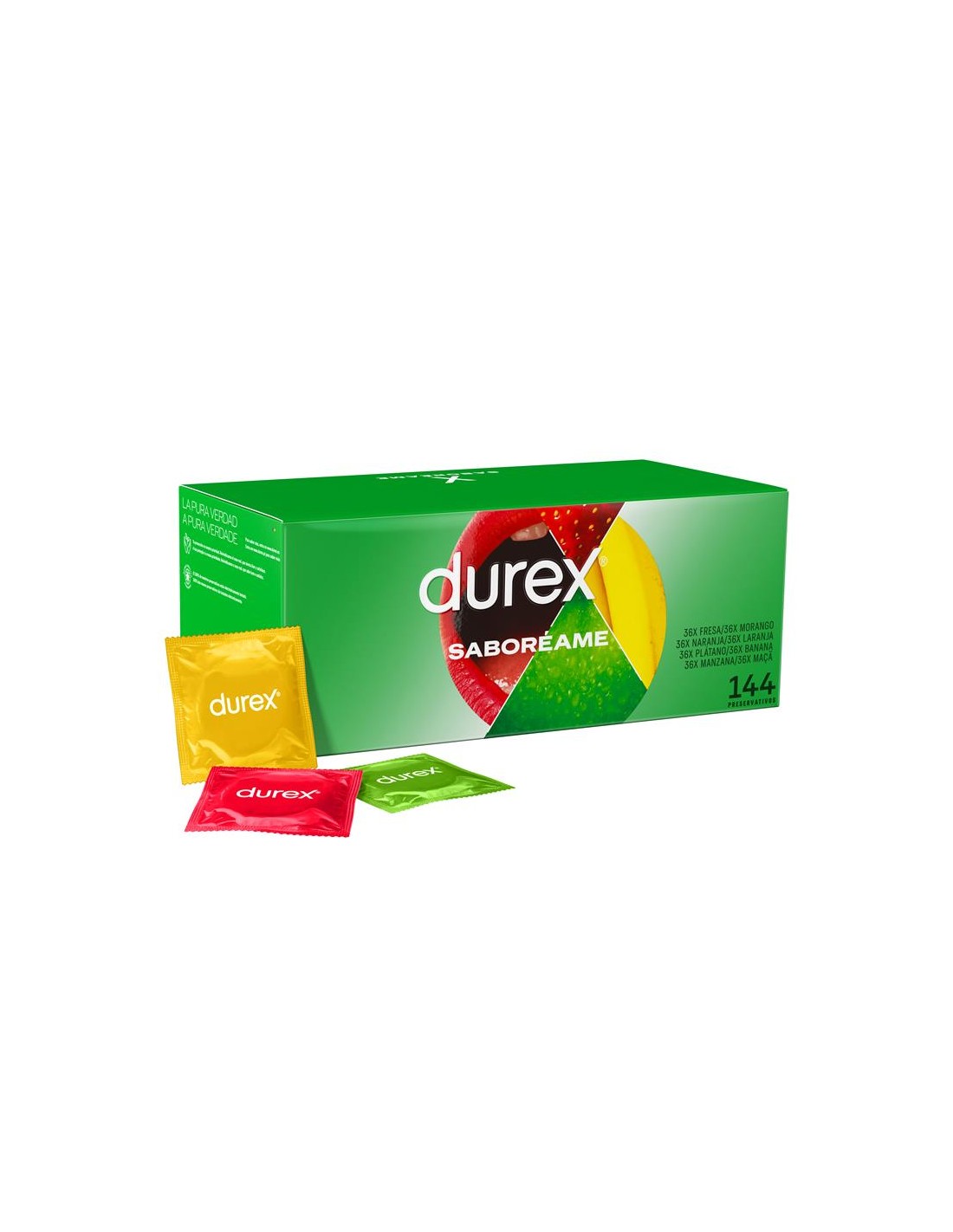 Durex Saboréame, sabores afrutados aptos para sexo oral. A veces es divertido probar algo diferente. Durex Saboréame es una selección de preservativos con sabor a plátano, naranja, fresa y manzana, para una experiencia más divertida. ?