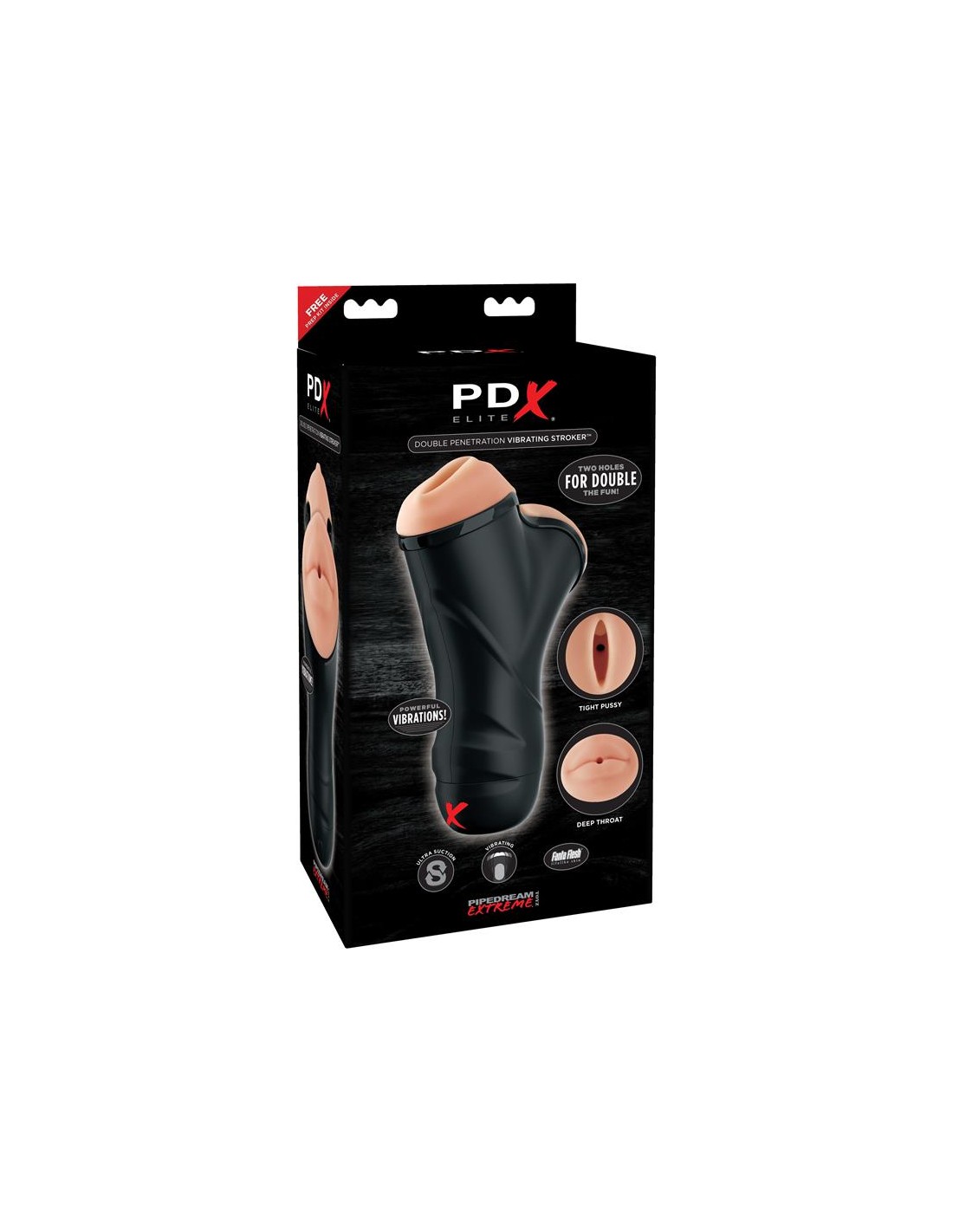 ¡Disfruta lo mejor de ambos mundos con una vagina apretada y excitante y una garganta súper realista para sexo oral! Curvado únicamente para parecer como una garganta, este masturbador vibrador de doble penetración está revestido del material ultra realista Fanta Flesh para la experiencia de masturbación más realista posible.