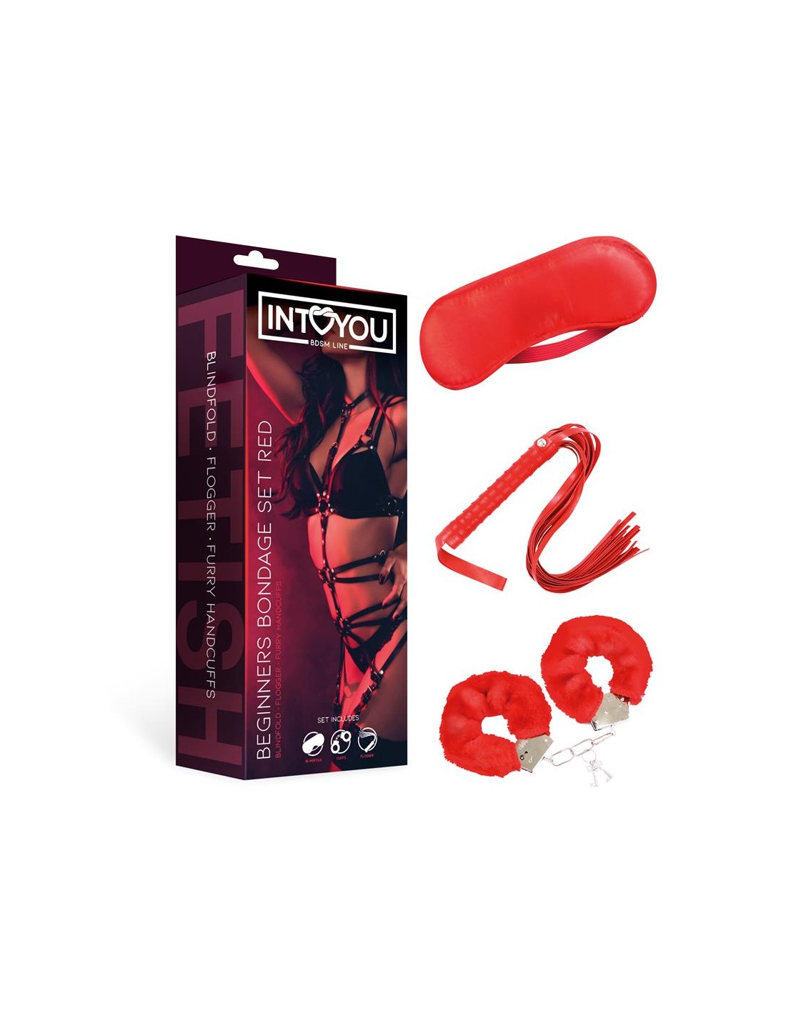 Seduce, domina, déjate seducir, juega con el rol de esclavo, este set es perfecto para cualquier situación. Tapa los ojos a tu pareja con el antifaz de tacto sedoso, espósalo para tenerlo dominado con las esposas de pelo corto y da unos buenos azotes con el flogger, o bueno, deja que te lo hagan a ti.
