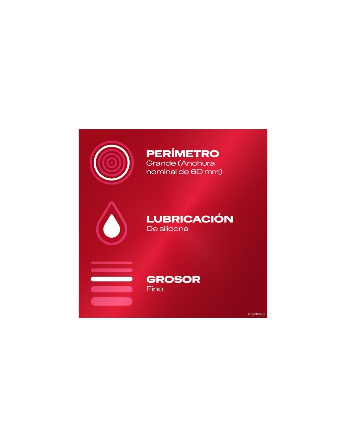 Preservativos Sensitivo XL, para la comodidad de quienes prefieren un tamaño más grande que nuestro preservativo Sensitivo Suave Regular. Los preservativos Durex Sensitivo XL tienen un grosor fino, para mayor sensibilidad. Su perímetro es grande, tienen una anchura nominal de 60 mm, y están lubricados de silicona. Estos condones son transparentes de látex de caucho natural y tienen forma anatómica Easy-On, suave y con depósito. Todos somos diferentes, pero la talla correcta debe hacerte sentir cómodo y seguro siempre. Para ayudarte a ponértelo bien a la primera, el logo de Durex en el sobre te indica la parte inferior del preservativo. La forma en que hacemos los preservativos Durex los hace oler mejor. El 100% de nuestros preservativos están electrónicamente testados. Además cada lote pasa por 5 tests de calidad. Dermatológicamente testado.