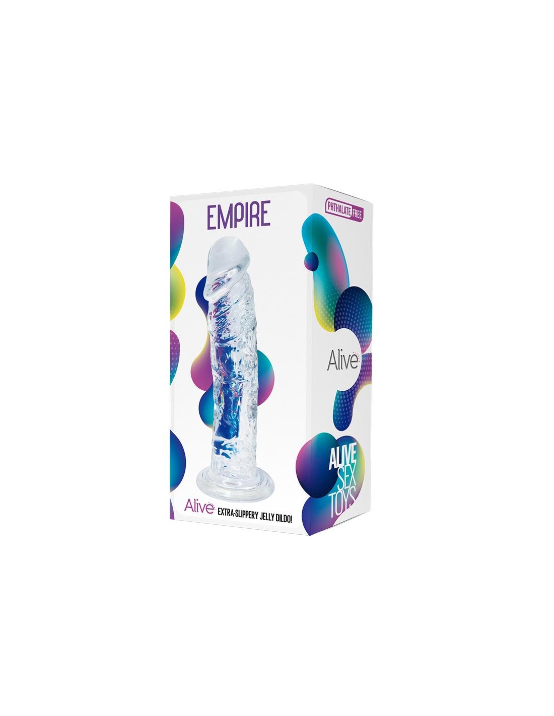 Su diseño es realista y cuenta con una textura gelatinosa transparente y su grosor de 4,2 cm. Este masturbador tiene un acabado impresionante con un glande pronunciado y venas bien marcadas. La peculiaridad de Empire de 19.3 cm es su textura extra resbaladiza y muy flexible.