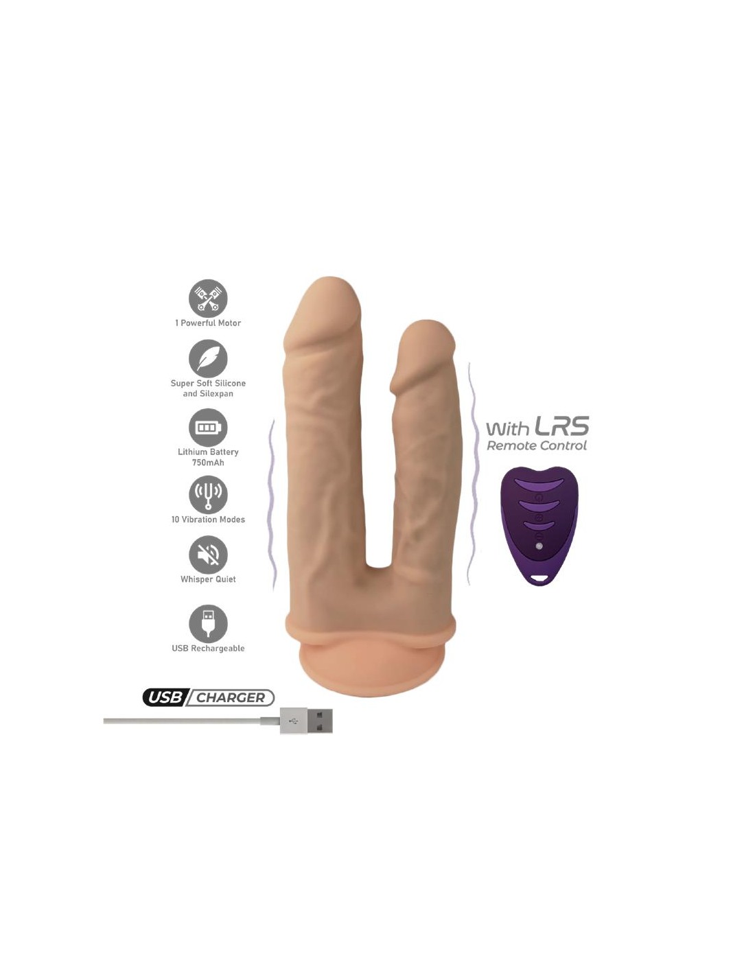 Un dildo doble de tu marca favorita con un toque extra, nada mas y nada menos que 10 funciones de vibración. Cuenta con dos penes realistas, con cuerpo con venas y glandes redondeados. Para que puedas disfrutar al máximo cuenta con 2 motores, potentes pero silenciosos. Sus materiales son suaves y esponjosos y es totalmente recargable por USB.