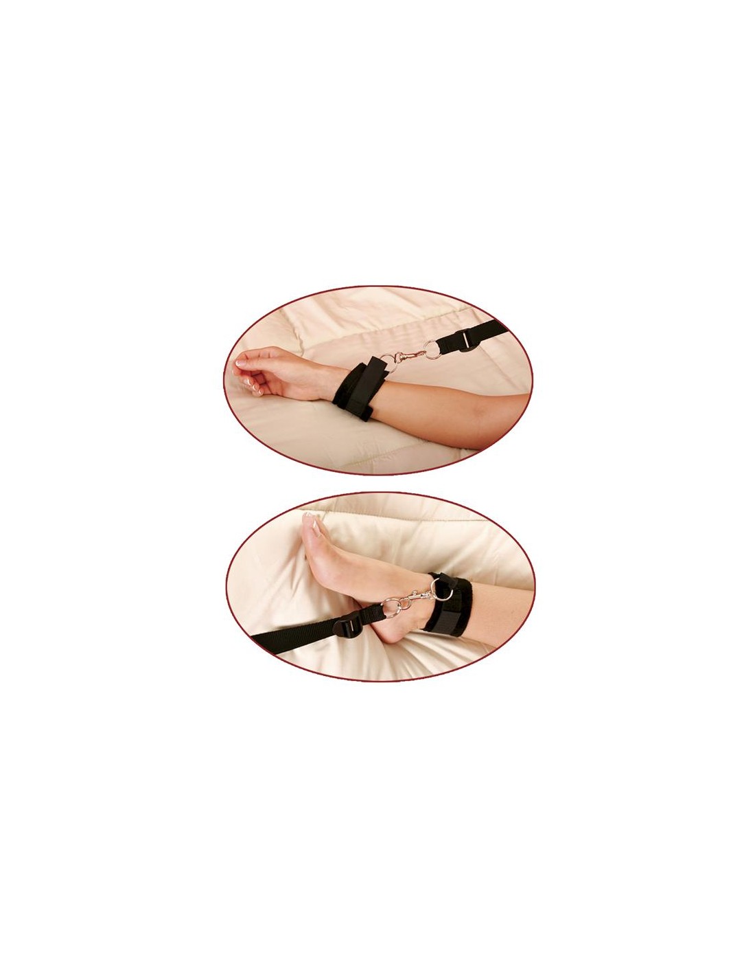 ¡Transforma tu cama en un patio de juegos y pasiones! No necesitas ni postes ni tableros pues se conectan bajo el colchón e igualmente abren un mundo de posibilidades para ti y tu pareja. Experimenta la emoción de la esclavitud y turnaos en el juego "un tiempo tu puedes dominar y al siguiente puedes ser dominado". Las correas de nylon son resistentes y están conectados a 4 puños forrados de neopreno que se ajustan fácilmente para sujetar firmemente a tu pareja. ¡Explora tus fantasías fetichistas más profundas!