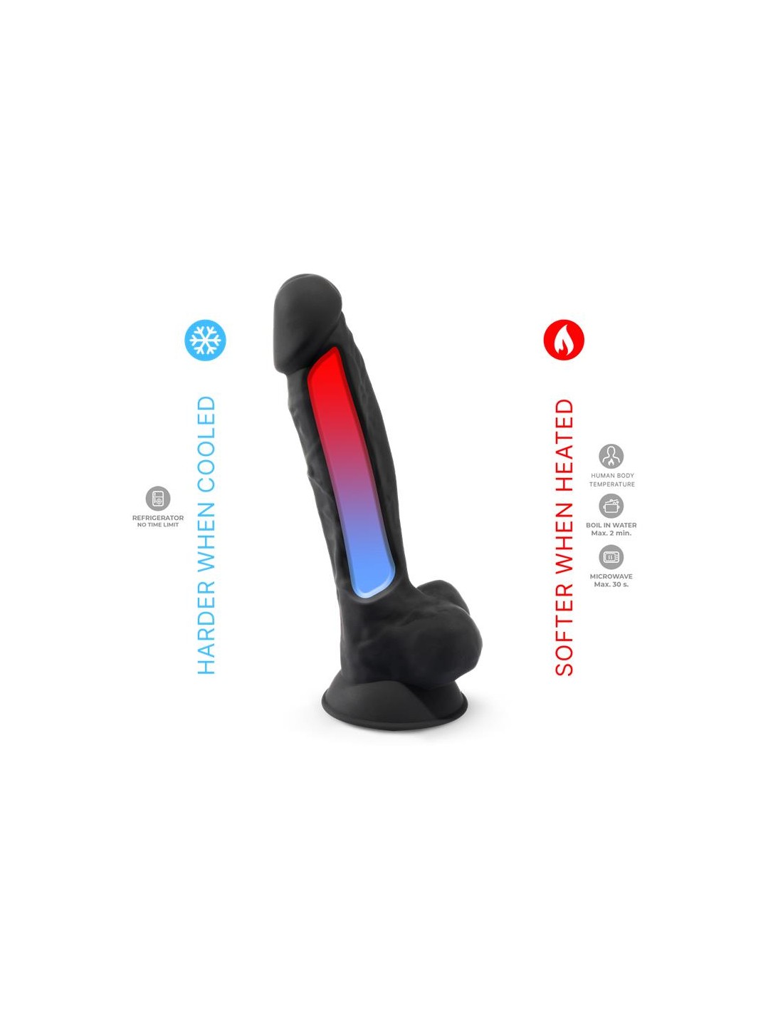 Su nueva fórmula Thermo Reactive hará que cuando tu dildo esté caliente esté más blando, y cuando esté frio más duro, para que decidas hasta la firmeza que te apetece en cada momento.