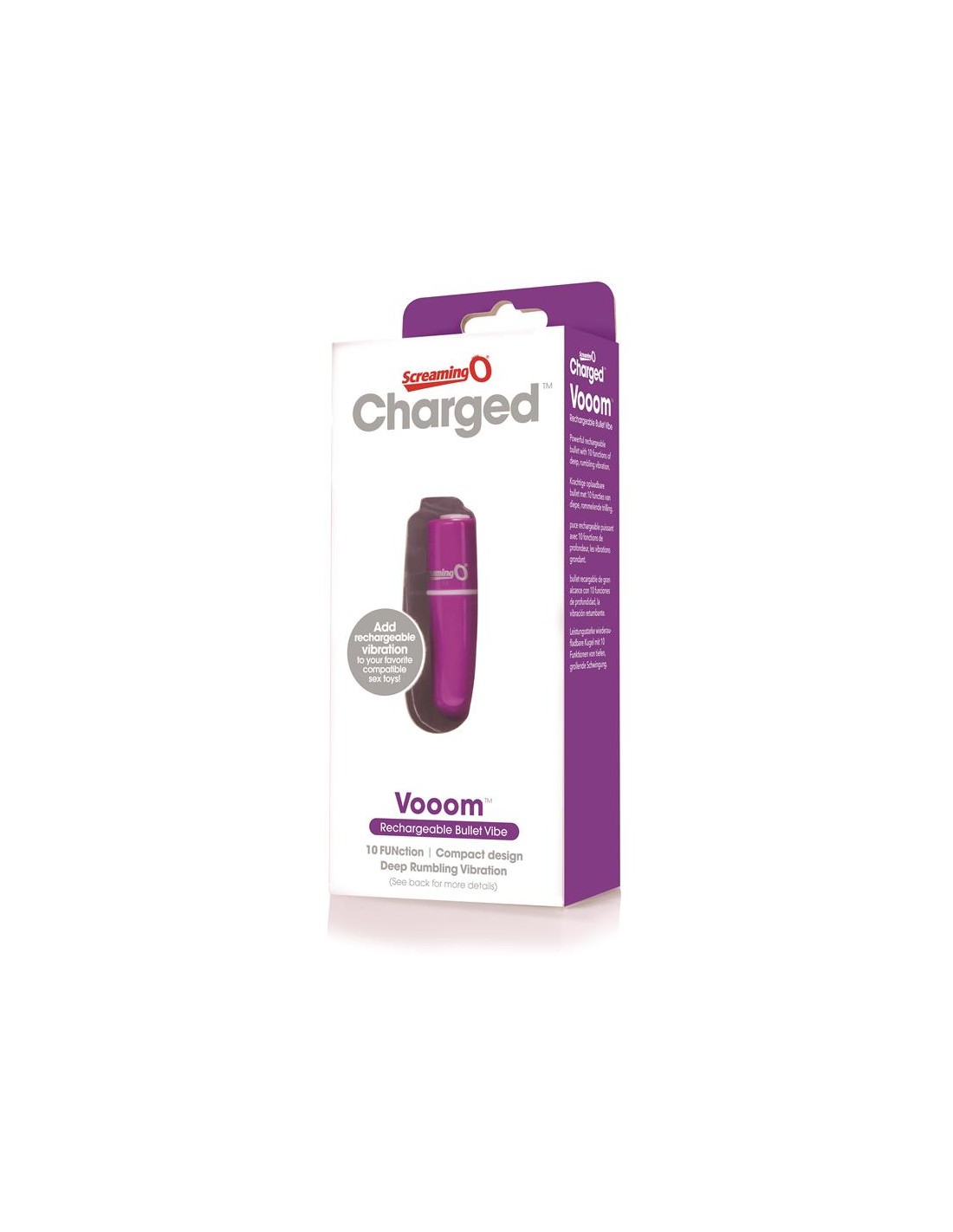 Disfruta de una poderosa vibración portátil con Vooom Charged, una bala vibradora 100% impermeable equipada con un motor de 10 funciones ¡que zumban a una frecuencia diferente a cualquier cosa que hayas sentido! Esta nueva tecnología genera un placer penetrante y una sensación dramática ¡que se pueda gozar casi donde quieras! Su forma elegante significa que también puede adaptarse a la mayoría de los productos Screaming O existentes y darles un impulso intenso de potencia. A su velocidad más alta, Vooom Charged vibra durante más de 60 minutos y se recarga fácilmente con un conveniente conector USB (incluido) que se conecta de forma segura y se mantiene puesto durante la duración de la carga. ¡Disfruta de Vooom cargado por si solo o úsalo para añadir una vibración potente y resonante a tus accesorios íntimos compatibles favoritos!