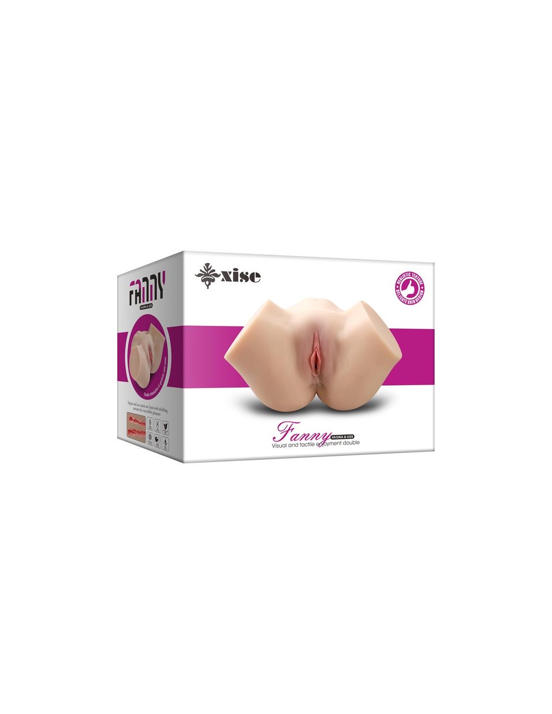 Pasa la mejor noche de tu vida con Fanny, un masturbador realista. Cuenta con materiales suaves y esponjosos para que puedas apretar y disfrutar sin límites. Cuenta con dos orificios, vagina y ano.