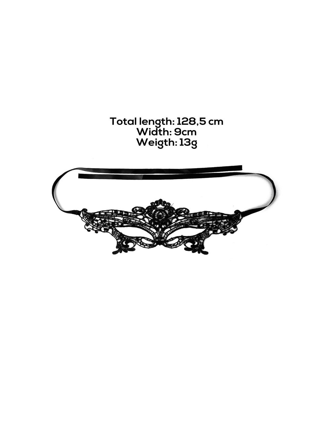 Complemento que no puede faltar en cualquier colección, una máscara tipo veneciana con un patrón muy elegante. Es ajustable gracias a su lazo trasero y se asentará en tu cara aportándote ese toque misterioso.