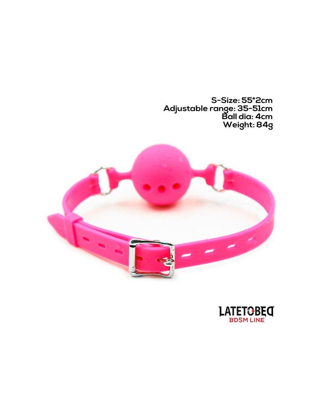 Mordaza de bola transpirable de tamaño pequeño. Es totalmente ajustable gracias a su hebilla en la parte trasera.