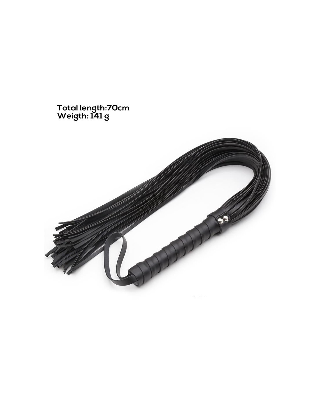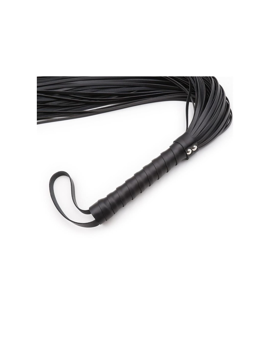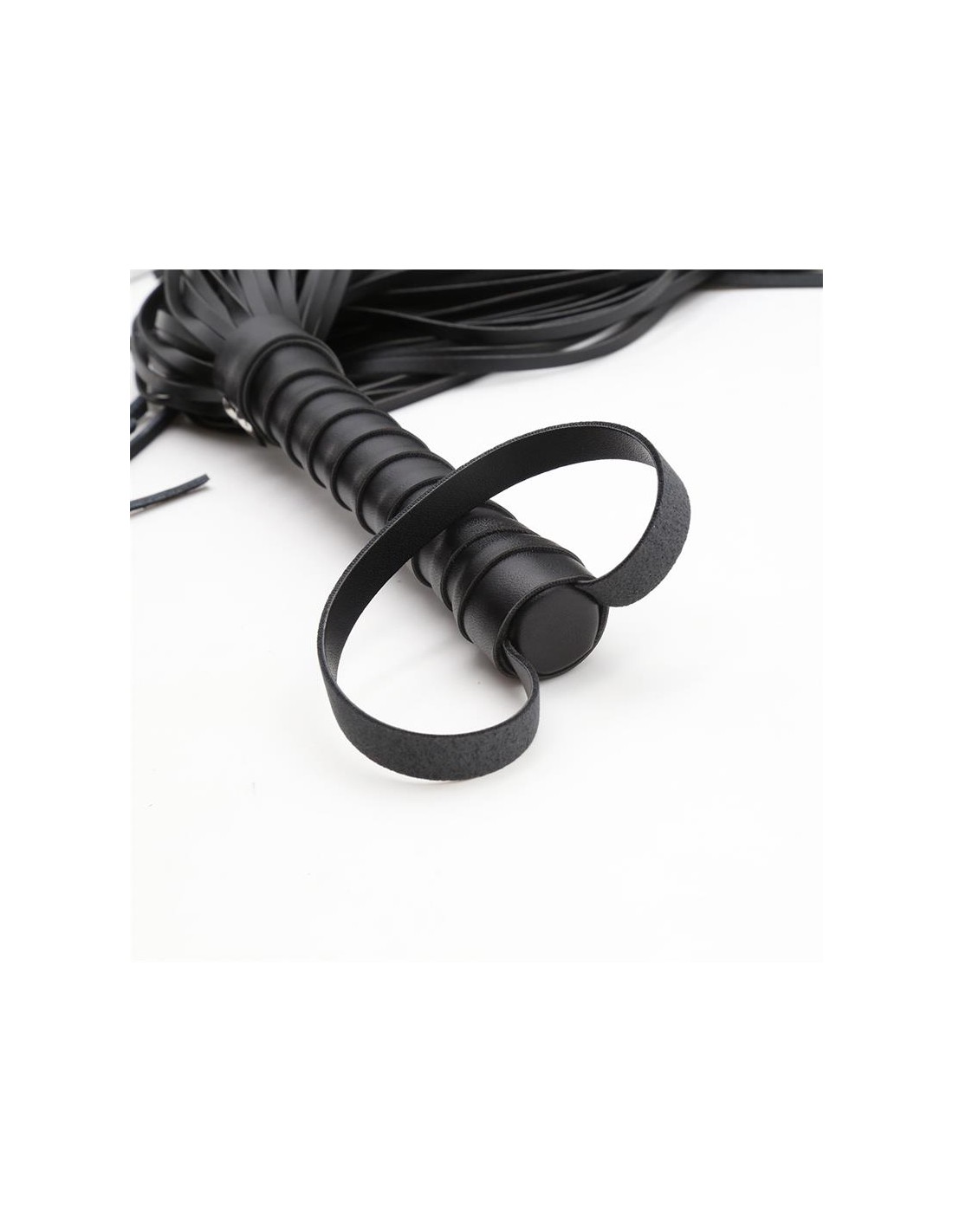Añade ese toque elegante, sensual, y potente a tus relaciones con este flogger con largas colas de cordel. Cuenta con un mango alargado y texturizado, y con un aro al final para una comodidad y latigazos extra sensuales.