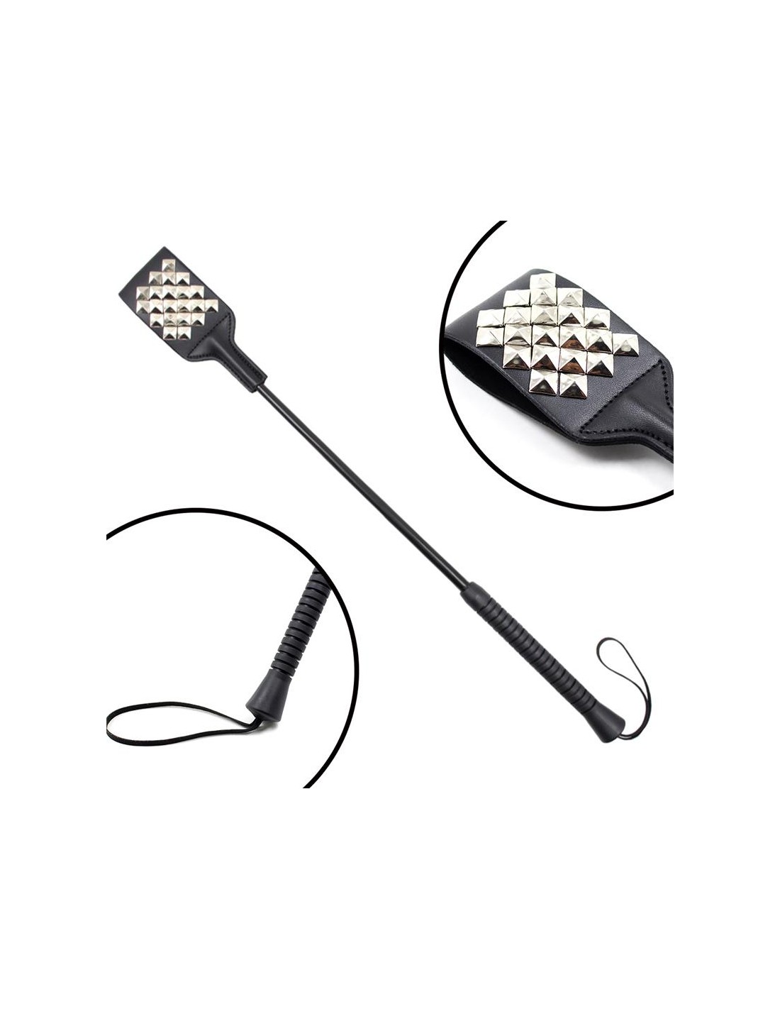 Completa tu colección con esta fusta cuadrada con tachuelas triangulares para un toque extra picante.