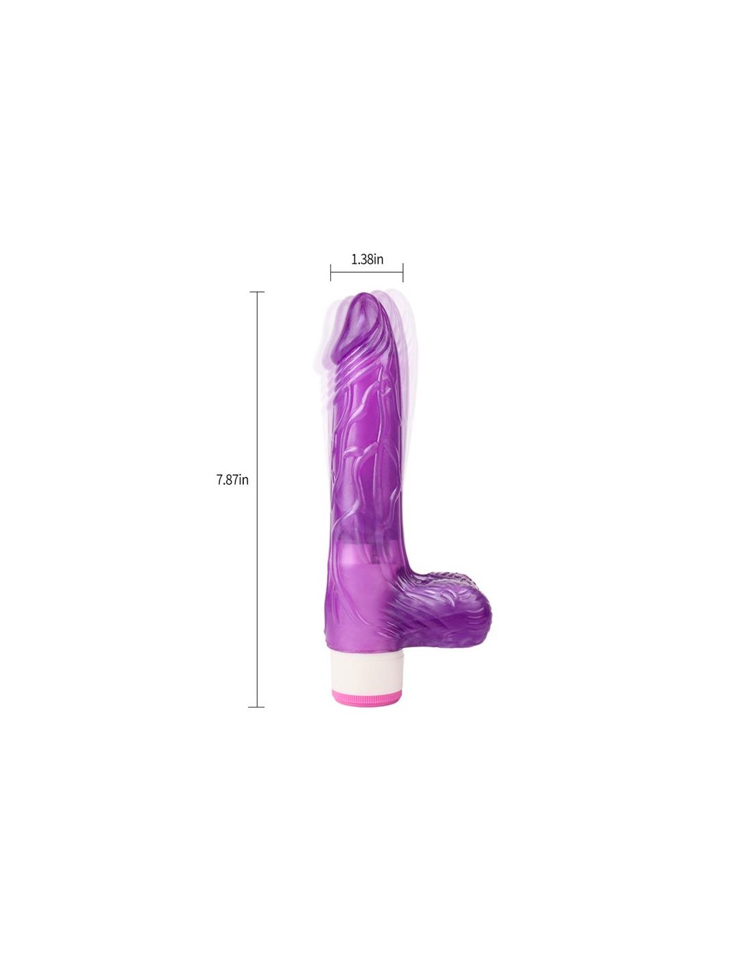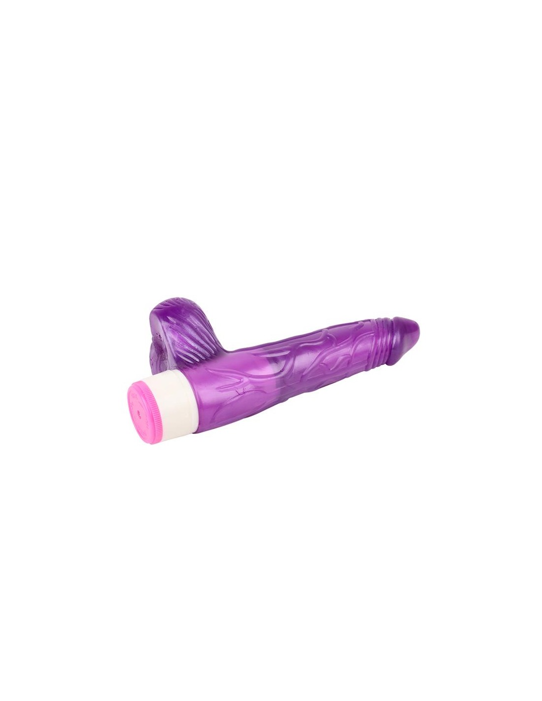 Dildo Jelly con una forma semi realista, con glande, un cuerpo lleno de venas y testículos. Cuenta con un dial en la base con el que viajar entre varias velocidades.